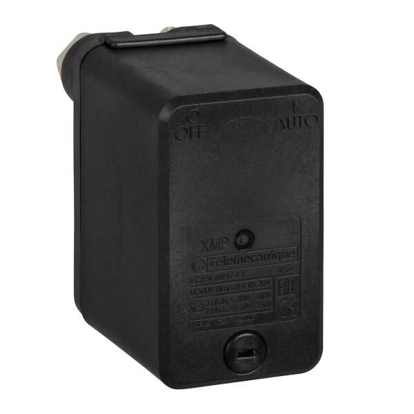 The XMP switches are electromechanical pressure switches for control circuits. They are used to control the pressure of water and air. It is an IP54 switch with an adjustable differential for regulation between 2 thresholds, without decompression valve. It is a bare case switch, without decompression valve. Ajustable range of switching point: from 1bar to 6bar or from 14.5psi to 87psi. 2 NC contacts, G 3/8 female fluid connection, 2 entries incorporating n°13 cable gland.